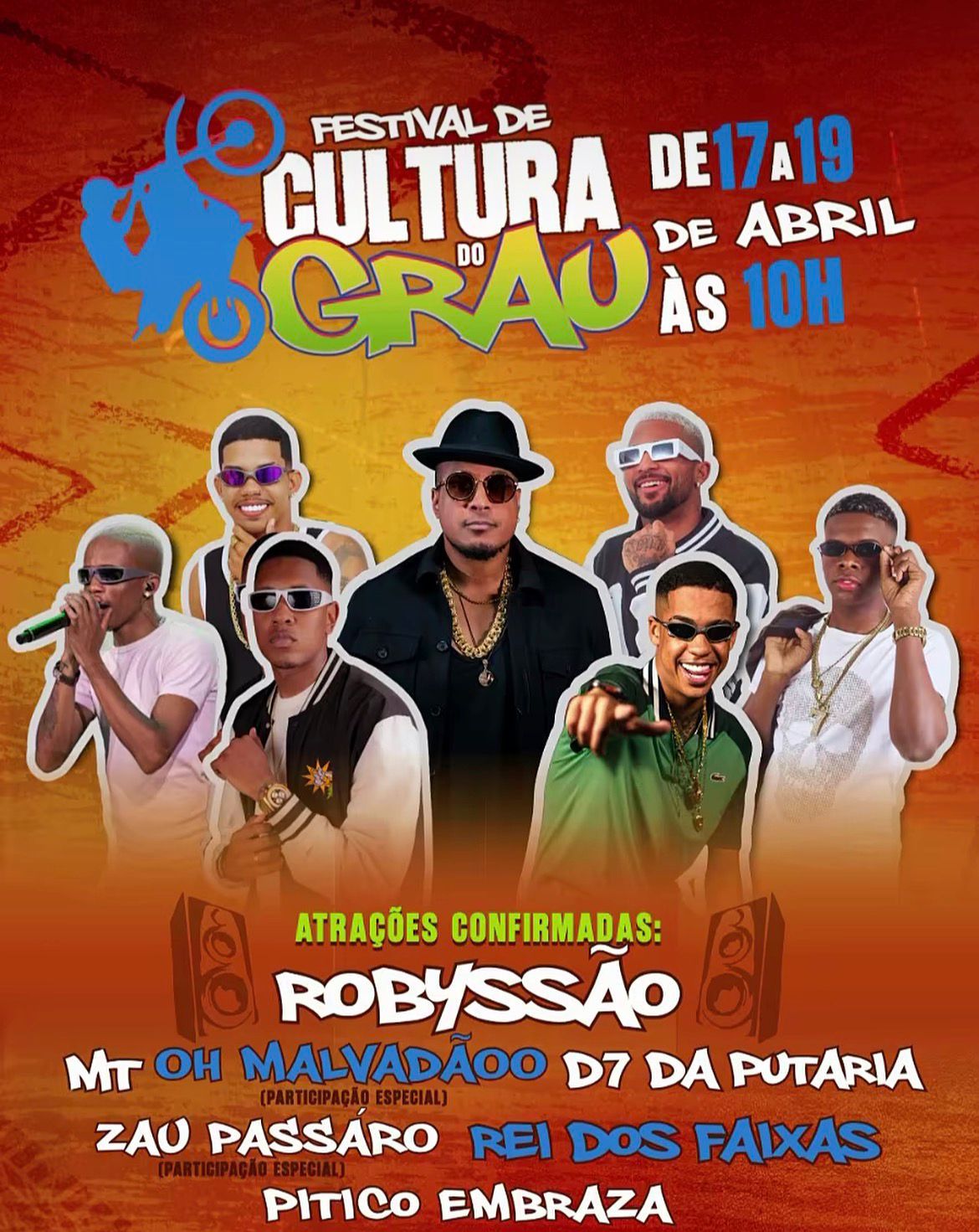 O público também contará com apresentações musicais de artistas como Robyssao, Rei dos Faixas e Zau Pássaro, entre outras atrações.