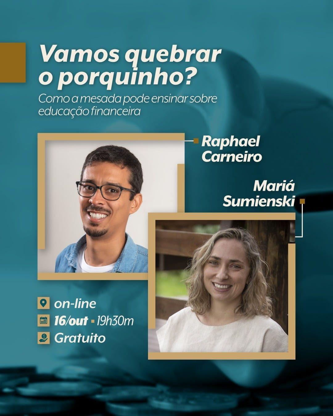 Mariá Sumienski (mãe de Lara) e eu (pai de Pedro), planejadores financeiros independentes, iremos conduzir essa conversa abordando as experiências de cada um em suas casas, os estudos e a vivência com as centenas de famílias atendidas.