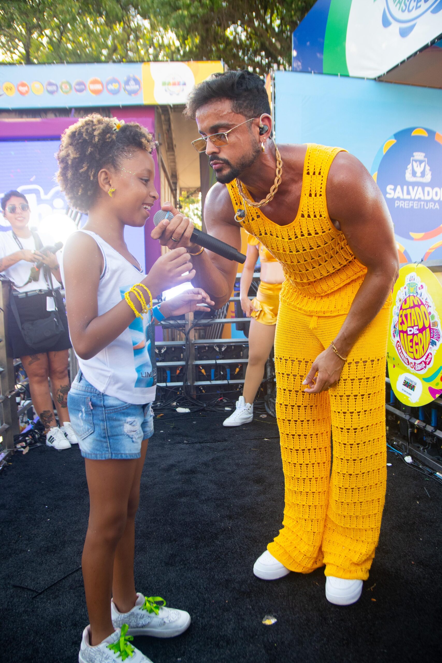 Durante a apresentação deste domingo (15), o artista percebeu na multidão uma fã mirim vestindo uma camisa com sua foto e visivelmente emocionada. Sensibilizado, ele a convidou para subir no trio elétrico e dançar ao som dos sucessos da banda.